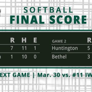 The HU softball team suffered a pair of road losses, 5-2, 8-0, to conference leader Indiana Wesleyan (19-3, 10-2) Tuesday afternoon. In addition to claiming a portion of the top spot in the…