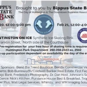 Ice Skate in Downtown Huntington on Feb. 20 or 21. Pre-registration for your free hour of skating time is required. Call the Huntington Park Department at (260) 358-2323 ext. 2502. Walk-up participation dependent…