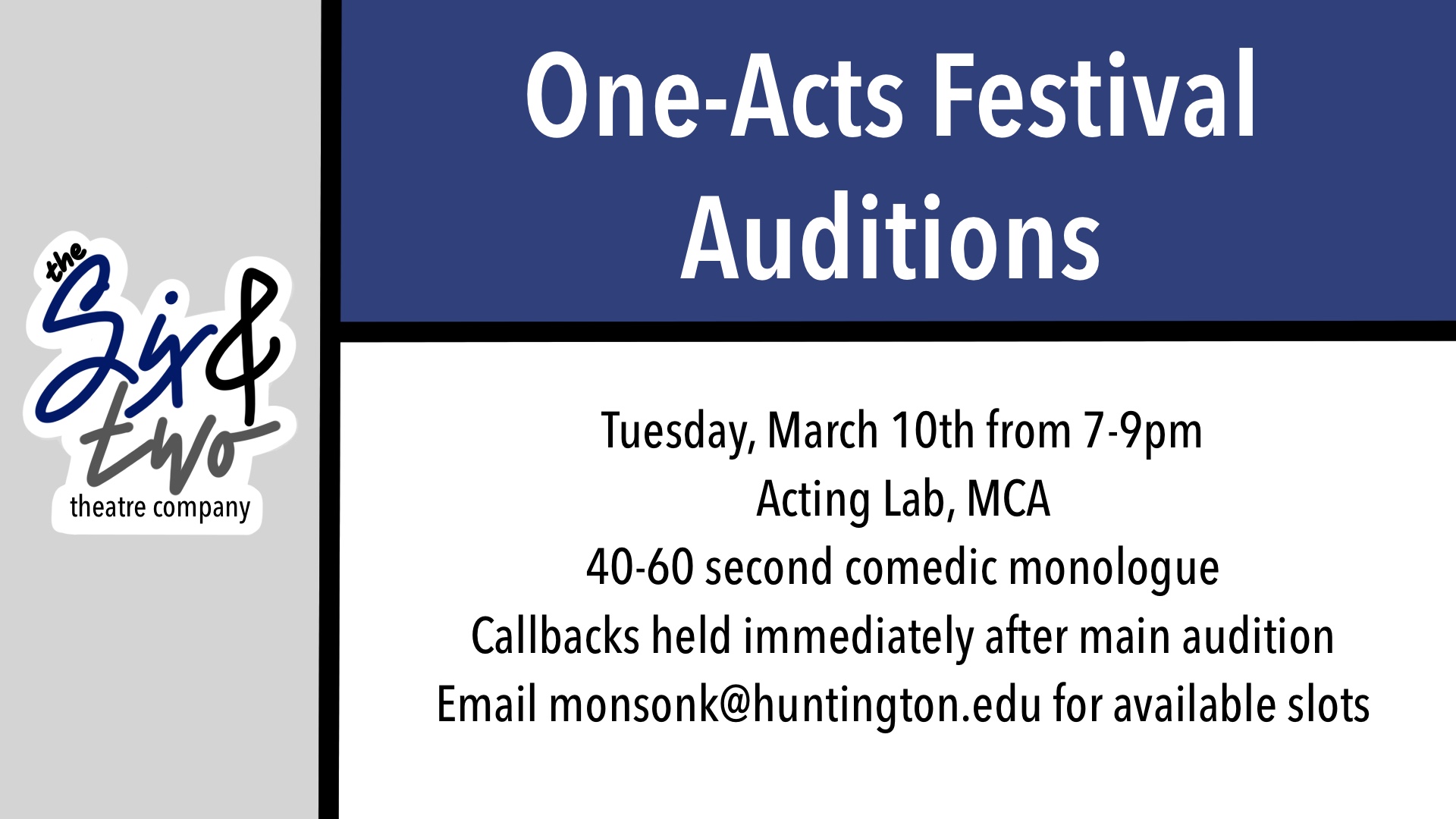 HUTC announces auditions for the student-directed one-act festival! This year, three hilarious productions will be showcased: “What Women Want Most”, “The Bear”, and “Old Detectives Never Die”. Sign up with this link: https://www.signupgenius.com/go/5080C45AEA82AABFD0-oneacts.…